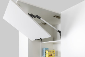 Hettich унифицировал присадку под все уровни оснащения. Меняется только наполнение, корпус и схема раскроя — нет. Простое масштабирование линейки без потери скорости производства.