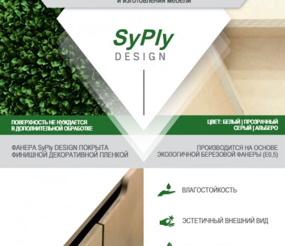 Фанера имеет финишное декоративное покрытие. Материал производится из экологичной березовой фанеры с пониженным содержанием формальдегида, облицованного меламиновой пленкой. Повышенная влагостойкость и прочность материала, сочетающаяся с привлекательным внешним видом, позволяет применять фанеру с меламиновыми пленками в производстве различных видов корпусной мебели и при отделке интерьера
