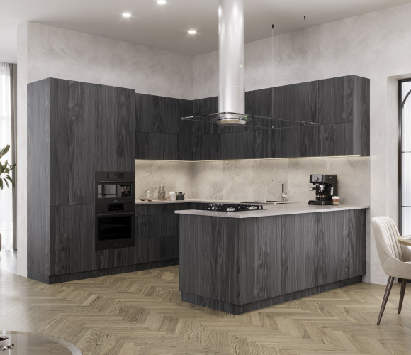 Темный и выразительный декор FOREST Дуб антрацит идеальный выбор для современных интерьеров.  Его насыщенный цвет и глубина текстуры создают ощущение стабильности и стиля, отлично сочетаются с минималистичными и строгими решениями.