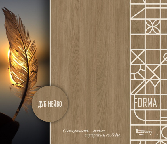 Тёплый древесный оттенок, в котором живёт искренность натурального дуба. Его поверхность ровная, спокойная, лишенная резких контрастов, дарит пространству ощущение безупречной чистоты и естественной гармонии. Эксклюзивное тиснение «Дуб» придаёт декору особую выразительность и естественность, создавая эффект настоящего дубового шпона.