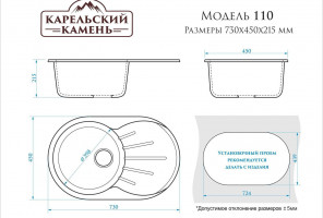 Мойка Модель 110, Овал 730х450х210мм, Черный Q4 Мрамор