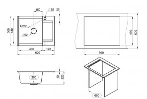 Мойка Модель 150, Прямоугольная Малая 575х470х218мм, Черный Q4  Мрамор