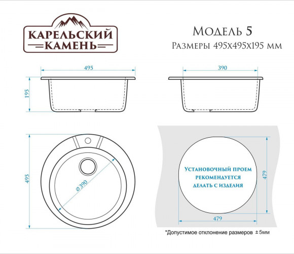 Мойка Модель 5, Круглая D495мм, Песочный Q5 Мрамор