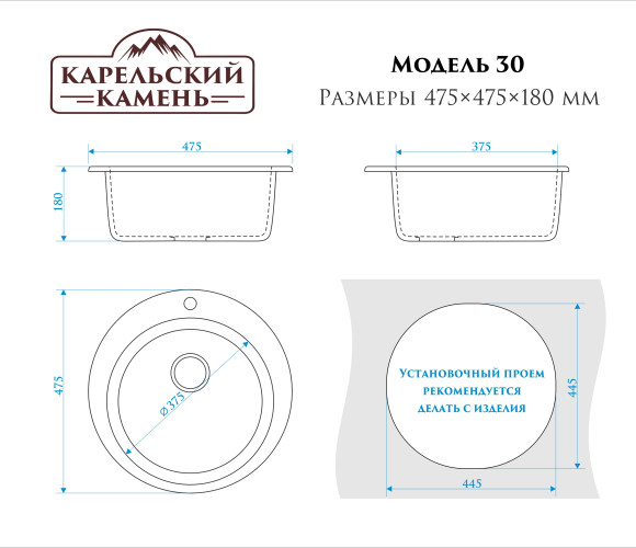 Мойка Модель 30, Круглая D475мм, Слоновая кость Q6 Мрамор