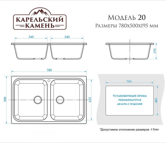 Мойка Модель 20, 780х500х195мм, Черный Q4 Мрамор