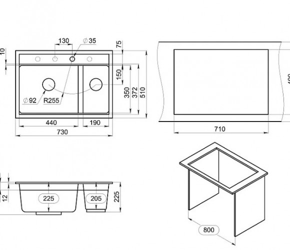 Мойка Granula с двумя чашами - идеальное решение для эффективной и комфортной работе на кухне. Широкая чаша предназначена для мытья большой посуды, а узкая - для ополаскивания и мойки фруктов, овощей и мелкой посуды. Материал - кварцевый песок, который обеспечивает надежность и прочность мойки. Форма чаши адаптирована под функциональный ролл-мат.