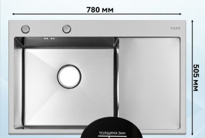 Мойка VANS левая L (780*505*200мм ) SATIN + ДОЗАТОР