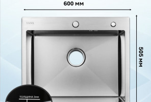 Мойка VANS (600х505х200мм, толщ.3мм), SATIN + ДОЗАТОР