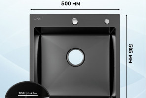 Мойка VANS (500х505х200мм, толщ.3мм), BLACK + ДОЗАТОР