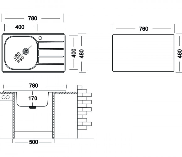 Мойка "Юкинокс" 780х480мм Правая Матовая Гранд GRM780.480 -GT6K 1R (с сифоном S701)