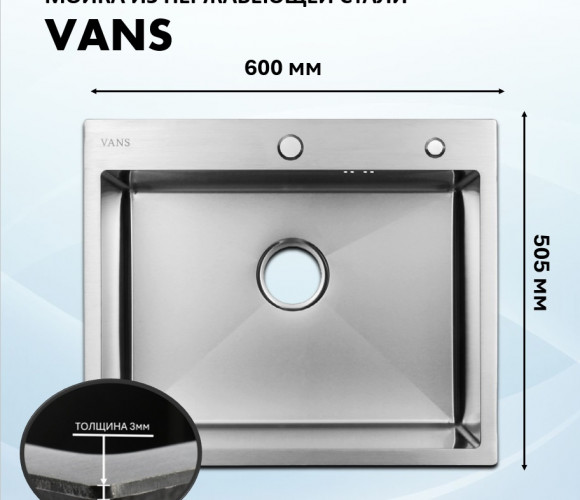 Мойка VANS (600х505х200мм, толщ.3мм), SATIN + ДОЗАТОР