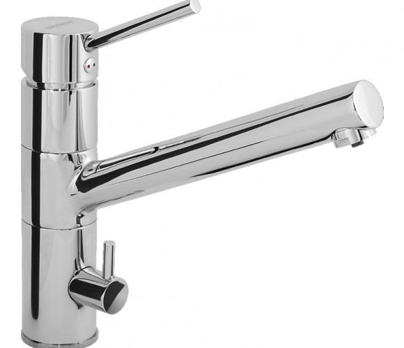 Современный однорычажный кухонный смеситель с отдельным каналом для питьевой воды. При использовании этого смесителя отпадает необходимость вырезать в кухонной мойке или столешнице дополнительное отверстие для установки отдельного крана для питьевой воды. Управление каналом для питьевой воды осуществляется при помощи отдельного рычага. Смеситель имеет высокий поворотный излив, керамический картридж, аэратор. Он подключается при помощи гибких шлангов с гайкой 1/2". В комплект входит специальный переходник 1/2" - 1/4" для соединения гибкой подводки смесителя с фильтром.