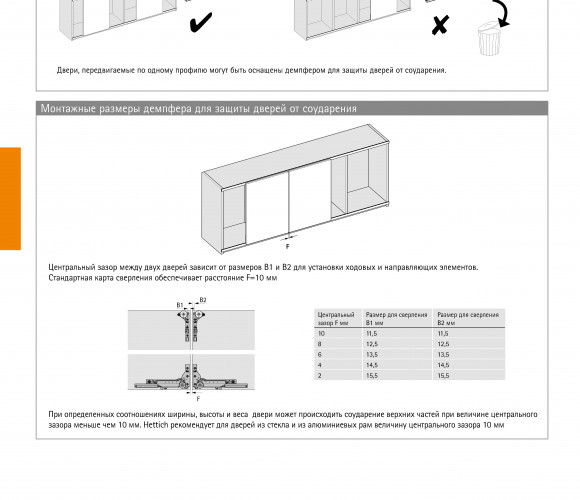 Комплект из одного профиля для мебели с раздвижными дверями, двигающимися вдоль друг друга.