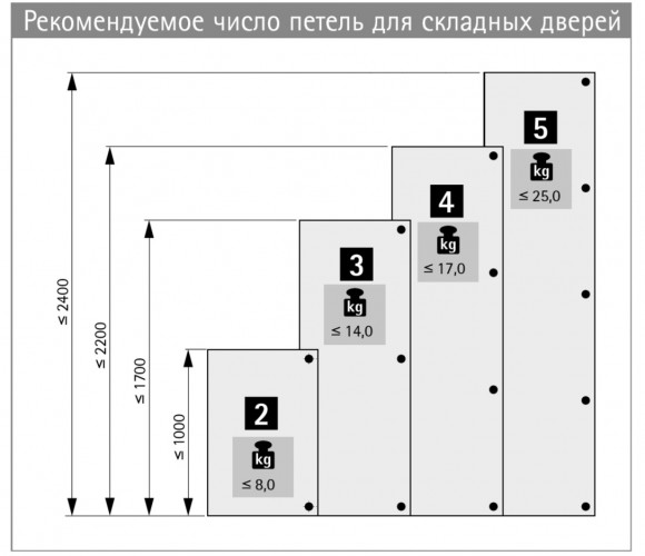 • - 4 петли для складных дверей