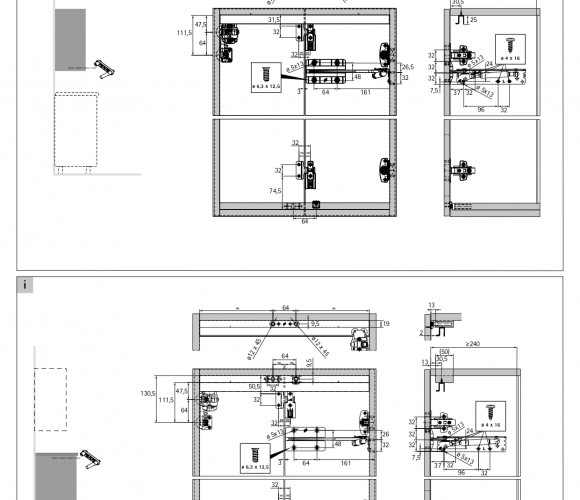 • - В сочетании с Push to move используются корпусные петли без функции самозакрывания. Рекомендуется: