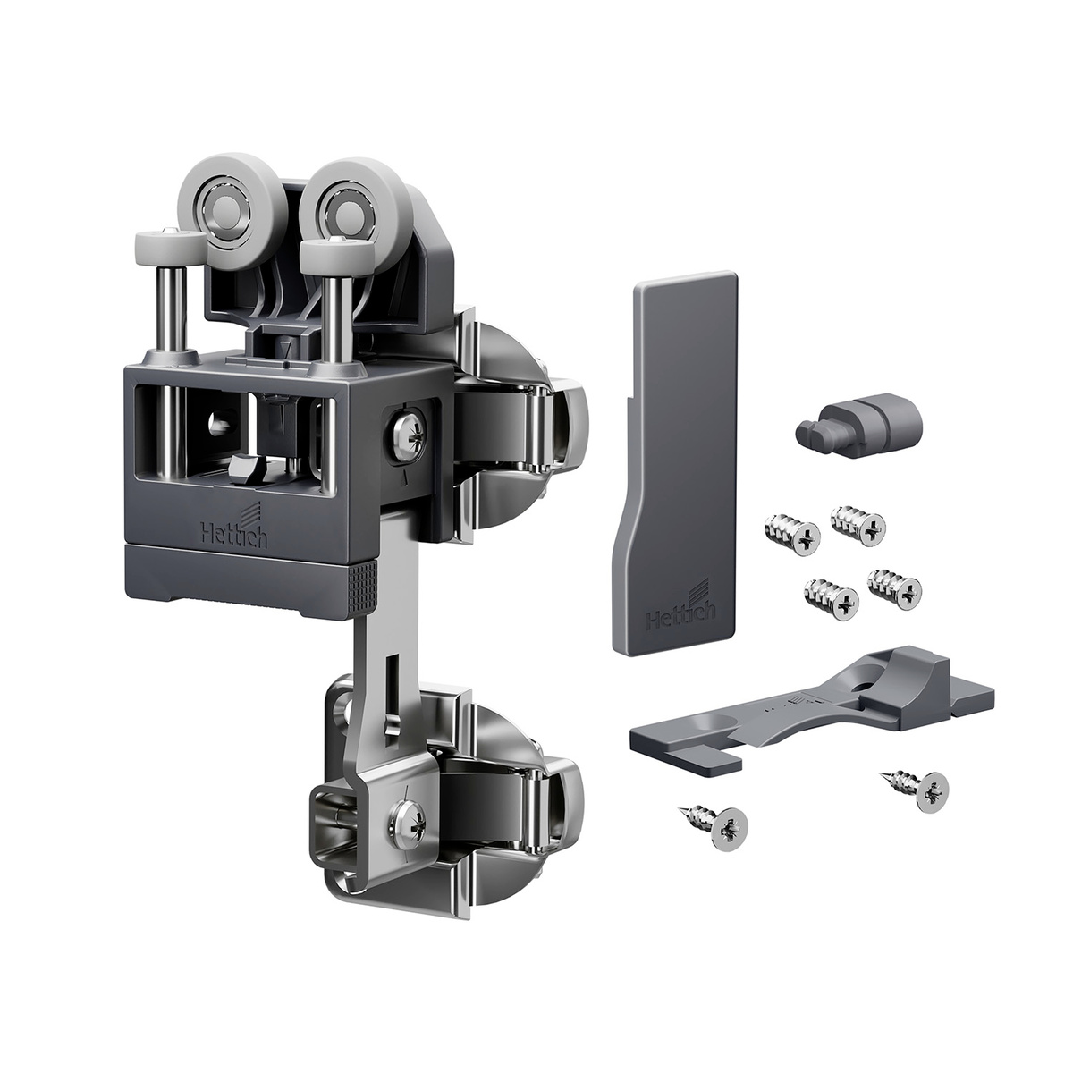 • В комплект входят все необходимые компоненты для одной складной двери с 2 створками, включая ходовой элемент с двумя петлями, заглушку и крепеж