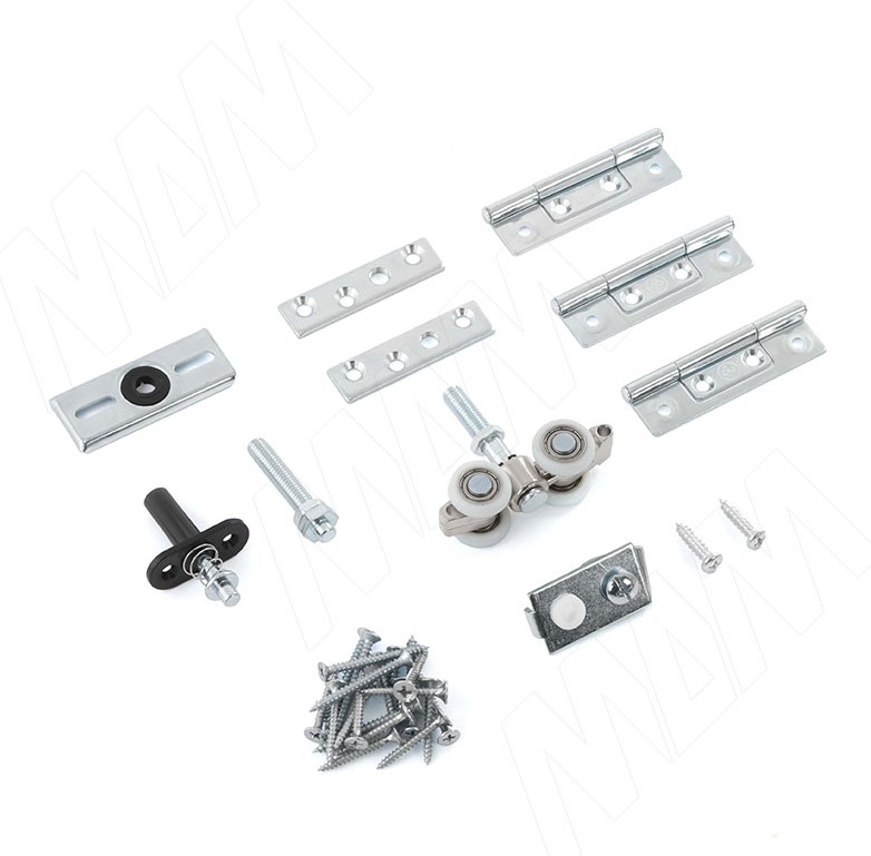Комплектация: верхний ролик, карточная петля — 3 шт., крепление для ролика, поворотная ось — 2 шт., установочная площадка —2 шт.