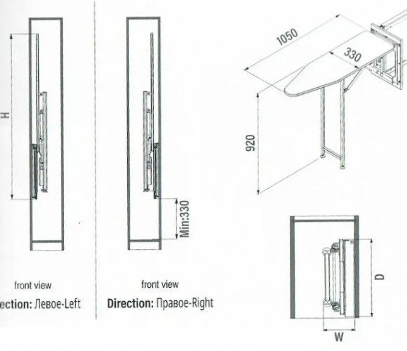 Доска Starax гладильная встроенная (150х340х1480), антрацит S-6611-A