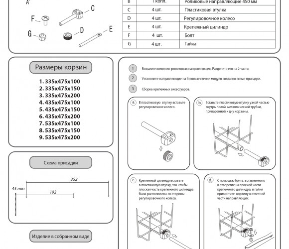 Корзина выкатная сетчатая 435х475х200 серебро SB500/200-SV