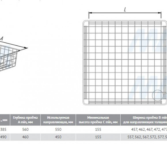Корзина выкатная сетчатая BASE 120х450х550мм. черный КС124555ЧР
