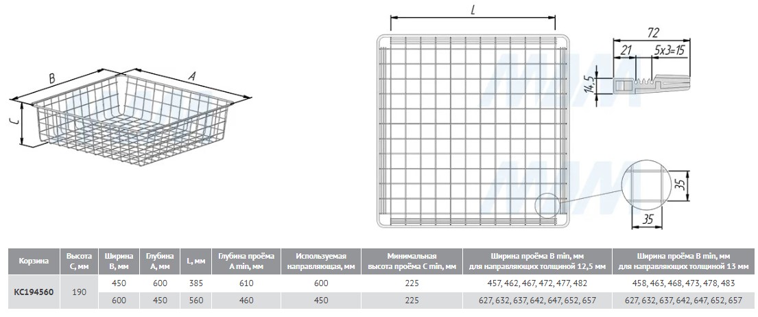 Корзина выкатная сетчатая BASE 120х350х450мм. черный КС123545ЧР