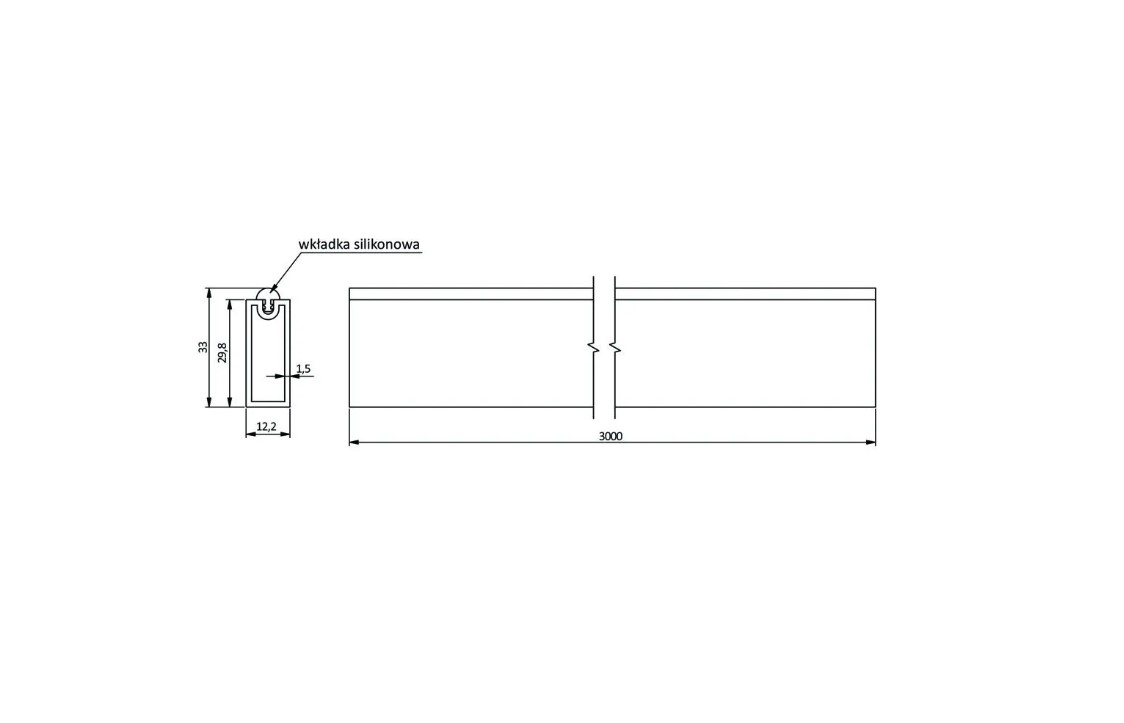 Штанга гардеробная прямоугольная с антискользящей вставкой, ЧЕРНАЯ WG-RRPSET-A-20M(продажа 1,5/3м.)