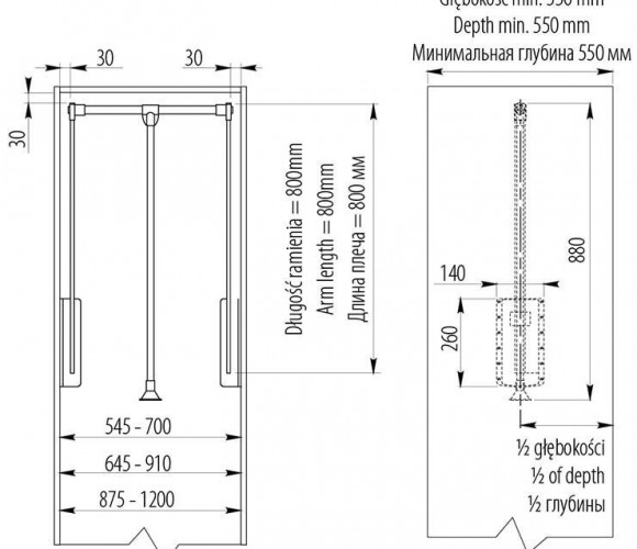 Пантограф 83/115 стальной, графит - гардеробный механизм, посредством которого опускается штанга с одежными вешалками в шкафу. Вы открываете (отодвигаете) дверь шкафа, тянете за ручку механизма, перекладина с вешалками смещается вниз, и вы берете нужный предмет одежды.