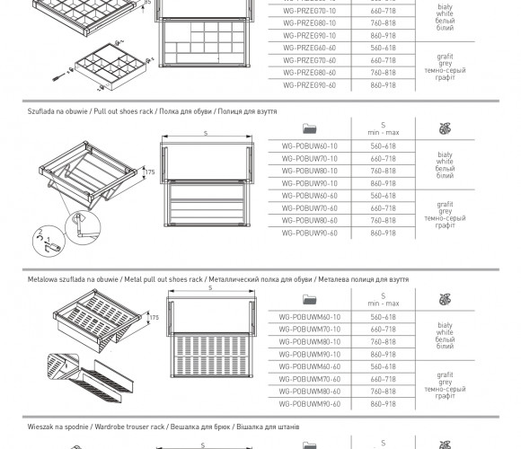 Полка для обуви WG-POBUW80-60 графит, с доводчиком, полного выдвижения - практичный элемент гардеробного наполнения, предназначенный для хранения обуви различного типа и быстрого доступа к ней.