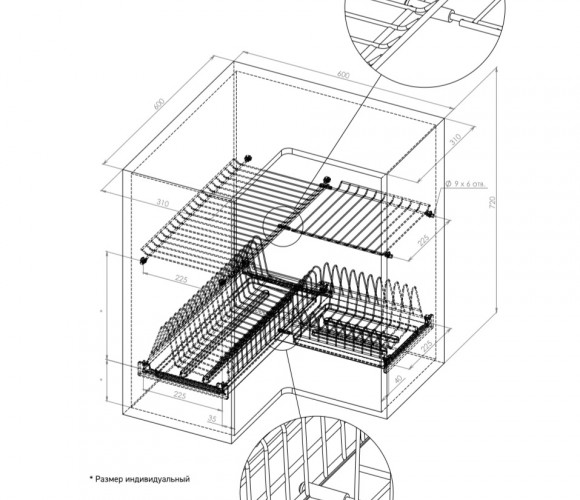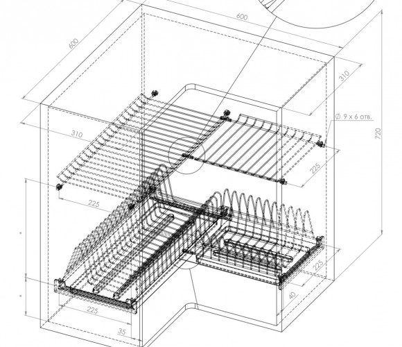 В базу по ширине: угловой посудосушитель (600х600 мм).