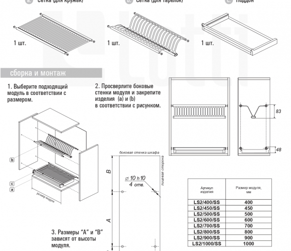 Посудосушитель 800 Lotti нерж. сталь AX304B.IN