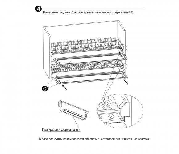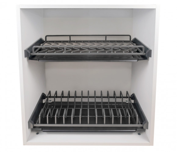 Каждый «этаж» PANDORA оснащён поддоном из плотного пластика графитового цвета, который легко вынимается для чистки. Выверенный узор решёток позволяет размещать тарелки популярного формата, а утолщённые прутки способствуют лучшему удерживанию посуды. Модель предусматривает лёгкую регулировку и надёжную фиксацию положения решёток с помощью специального ключа, который идёт в комплекте. Благодаря регулировке и фиксации возможно достичь идеального, неподвижного положения решёток в пазах пластиковых держателей. Весь крепёж закрыт крышками держателей и надёжно защищен от влаги. Сушка подойдёт для кухонь современных стилей, в том числе лофт.