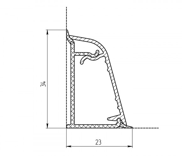 Комплект состоит из алюминиевого плинтуса и пластиковой основы.