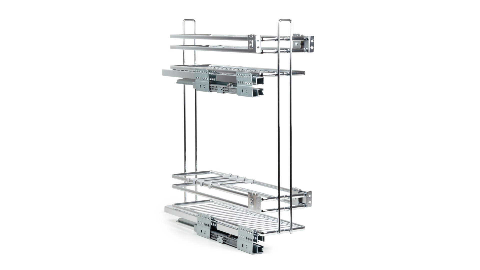 Надёжные направляющие полного выдвижения с амортизацией и синхронизацией обеспечат стабильное, плавное выдвижение. Брендированные декоративные накладки на направляющие создадут стильный и лаконичный вид.