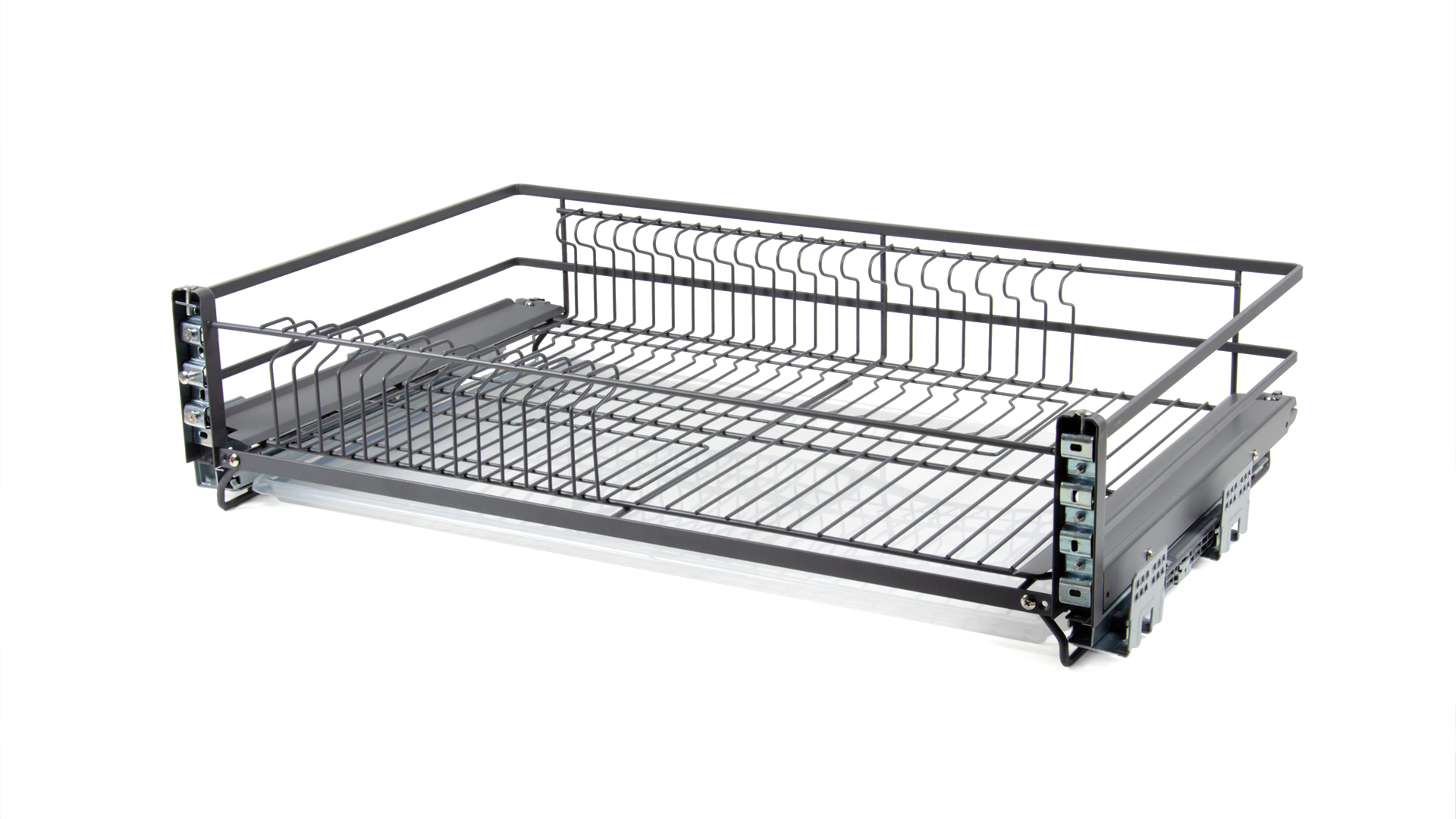 MIRA KRS06 — выдвижная корзина-сушка в эксклюзивном дизайне с плоским прутком предназначена для хранения разноплановой посуды в нижней базе мебельного гарнитура.