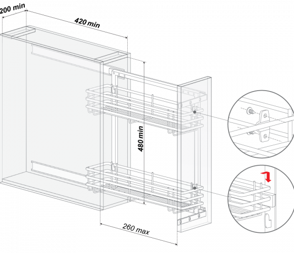 Cargo mini 200мм KR03/1/1/200 без доводчика, боковое крепление ХРОМ БОЯРД