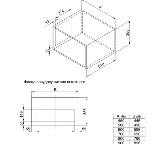 Тип корзины Посудосушитель выкатной