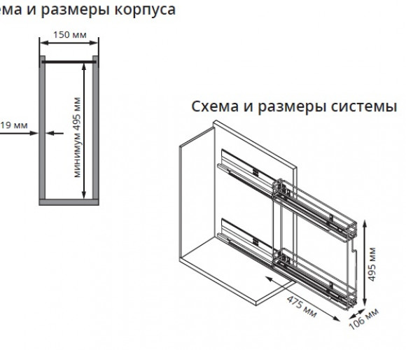 Cargo mini 150 мм Starax 2-х.ярусная, (106*475*495) антрацит, левая S-2422-А