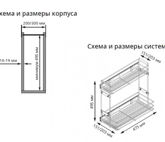 Cargo mini 200 мм Starax 2-х.ярусная, (151*475*495) антрацит, левая S-2426-А