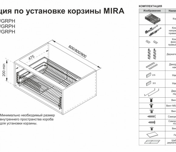MIRA KRS06 — выдвижная корзина-сушка в эксклюзивном дизайне с плоским прутком предназначена для хранения разноплановой посуды в нижней базе мебельного гарнитура.