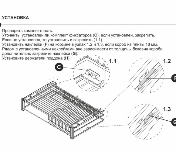 Для бесшумной работы изделия предусмотрены специальные демпфирующие вставки, прикрепить которые можно в места контакта корзины с выступами направляющих.