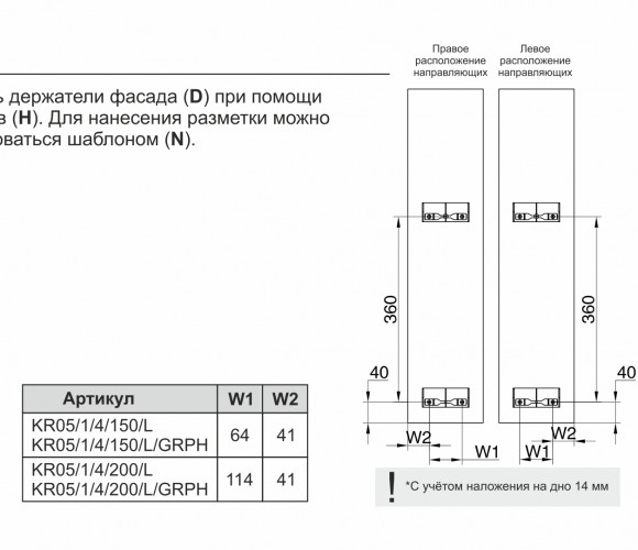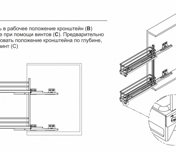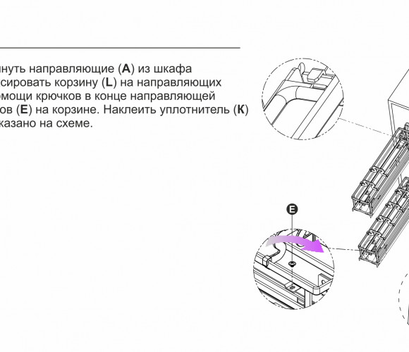 На направляющих также предусмотрен упор со смягчающим демпфером, выполняющий роль упора за вкладным фасадом и защищающий установку направляющих от повреждений.