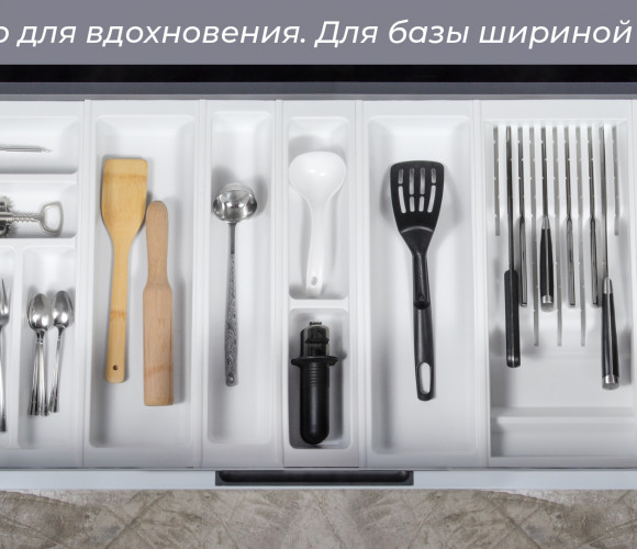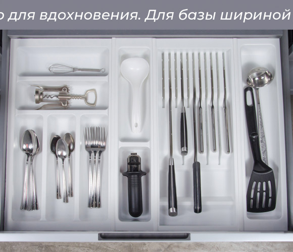 PC11 — узкий поддон из экологичного полипропилена, необходим для хранения столовых приборов. Является составным элементом для формирования индивидуальной комбинации поддонов линейки BL?KI для выдвижных мебельных ящиков глубиной 500 мм и шириной от 500 мм.