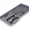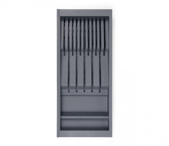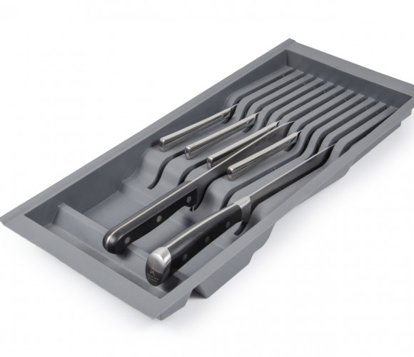 PC15 — поддон из экологичного полипропилена, необходим для хранения ножей разных габаритов. Является составным элементом для формирования индивидуальной комбинации поддонов линейки BL?KI для выдвижных мебельных ящиков глубиной 500 мм и шириной от 500 мм.