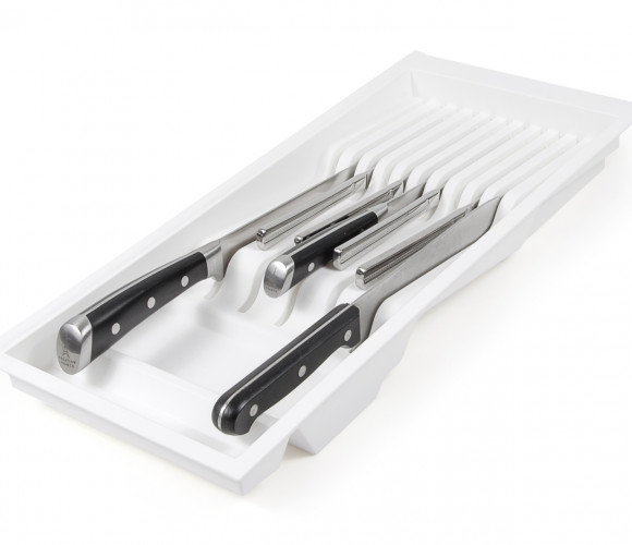 Эргономичная конструкция поддона рассчитана на размещение 5 больших и 6 маленьких ножей.