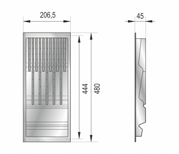 PC15 — поддон из экологичного полипропилена, необходим для хранения ножей разных габаритов. Является составным элементом для формирования индивидуальной комбинации поддонов линейки BL?KI для выдвижных мебельных ящиков глубиной 500 мм и шириной от 500 мм.