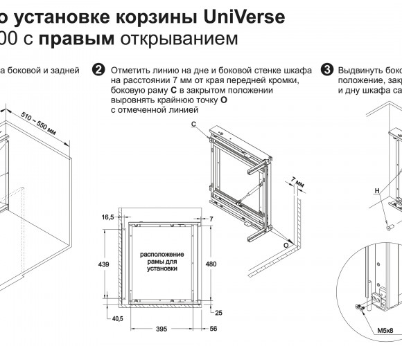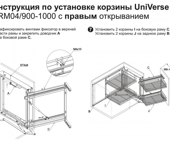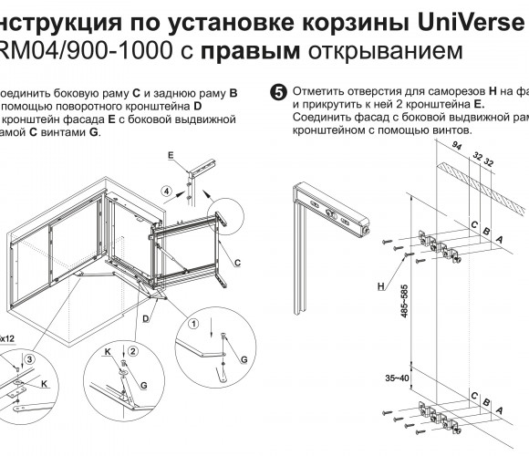 Корзина универсальна и может быть установлена как в левых, так и правых модулях на 900-1000мм.