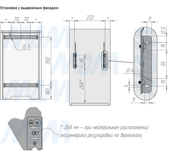 для распашных и выдвижных фасадов (с дополнительным крепежом);