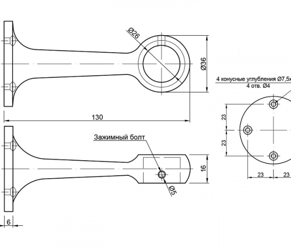 Держатель дистанционный концевой, R-50A (JK 65), хром 160139