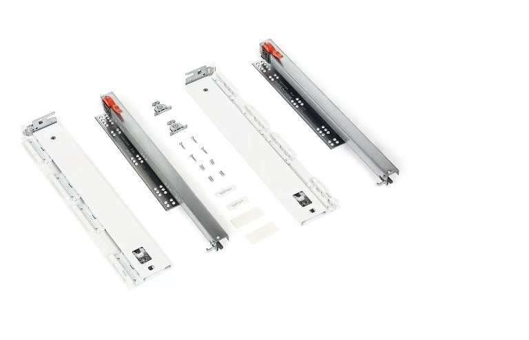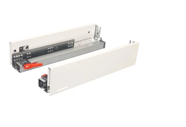 Выдвижной ящик (система выдвижения) с встроенным доводчиком и тонкими (12,8 мм) боковыми стенками. Применение модульные кухни, шкафы, тумбы и другая мебель.