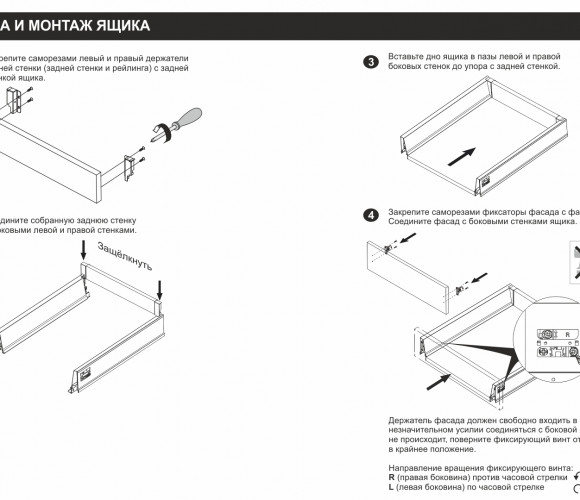 Для сборки выдвижного мебельного ящика на базе СТАРТ PUSH SB09 необходимо самостоятельно изготовить фасад, заднюю стенку и дно ящика.